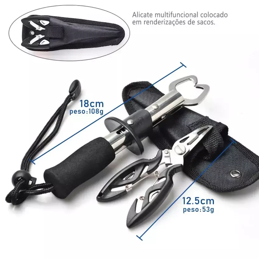✅ 1x Alicate de Pesca (18 cm) – modelo alongado com design ergonômico e empunhadura confortável 💪 fácil de operar com uma mão 🤲 molas de alta resistência e excelente força de fixação 🐟 acompanha cordão anti-perda ⚙️