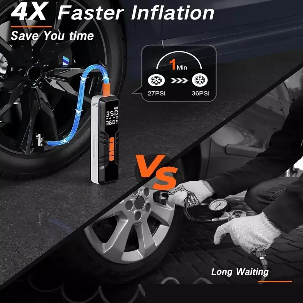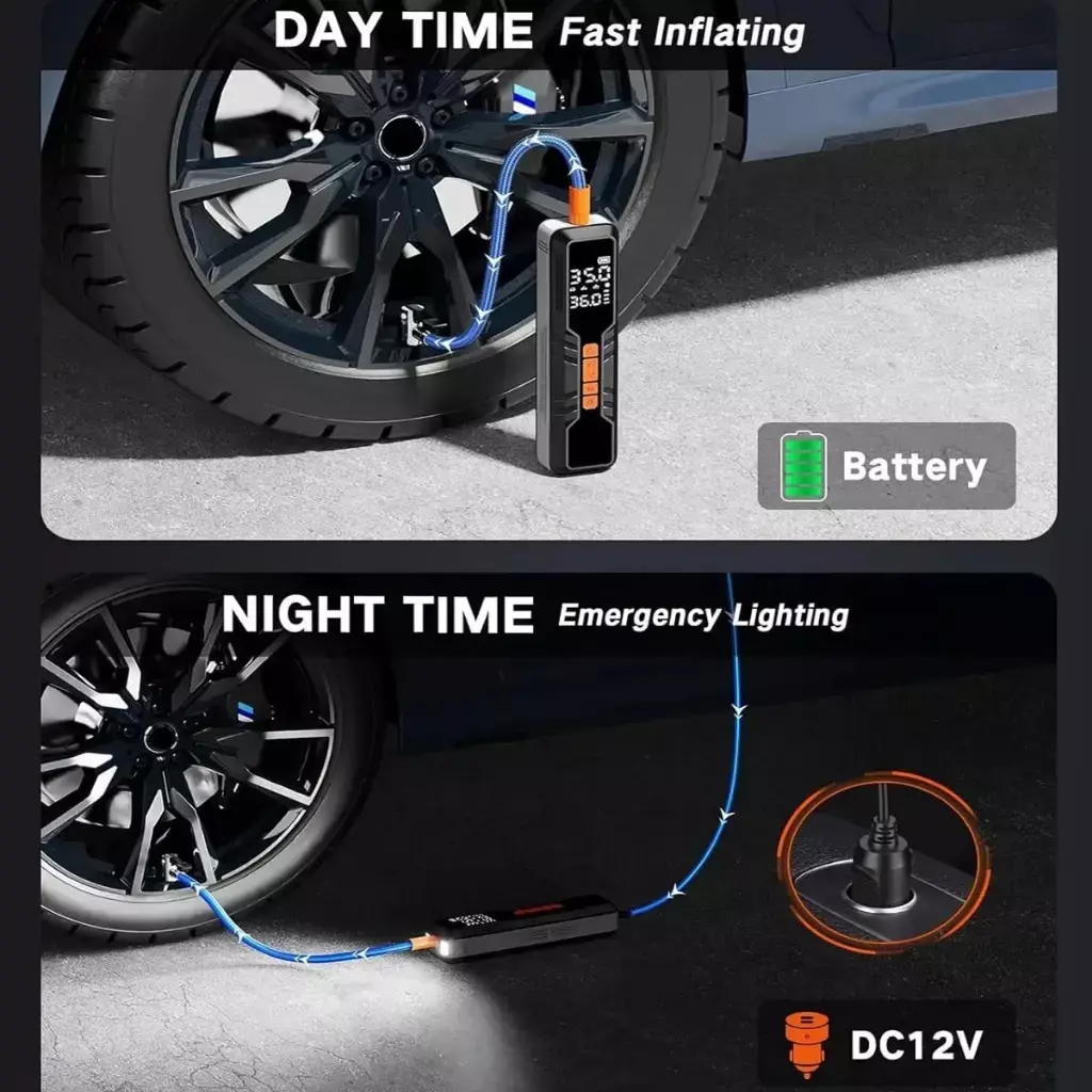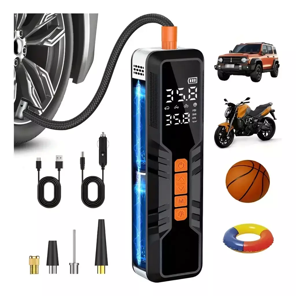 Mantenha seus pneus sempre na pressão ideal com o Compressor de Ar Portátil Multifuncional, prático, eficiente e fácil de usar. Ideal para carros, motos, bicicletas e bolas esportivas, garante enchimento rápido e preciso.