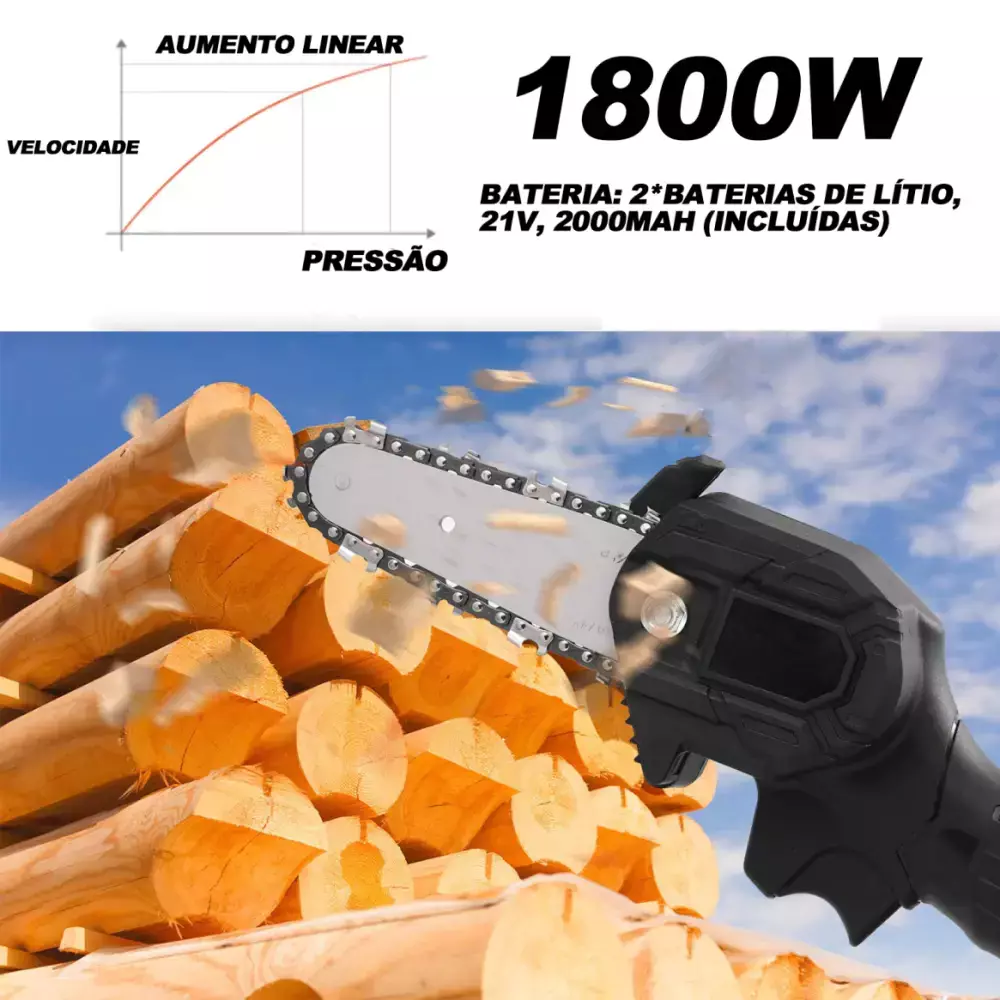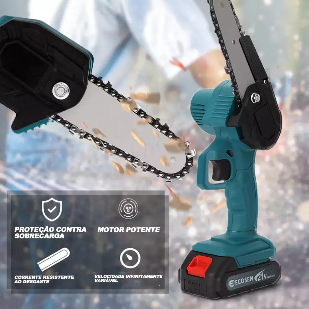 🌲 Motosserra Elétrica 21V Bivolt Recarregável com 2 Baterias – Compacta, Potente e Segura